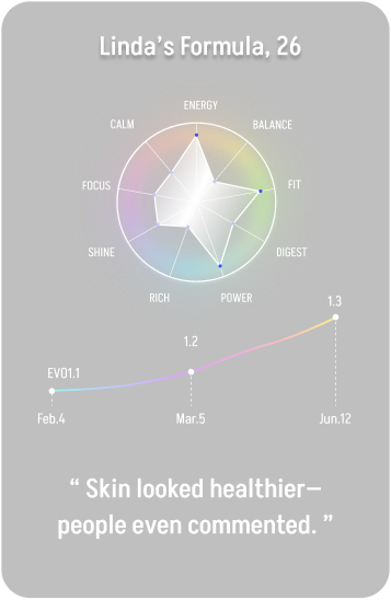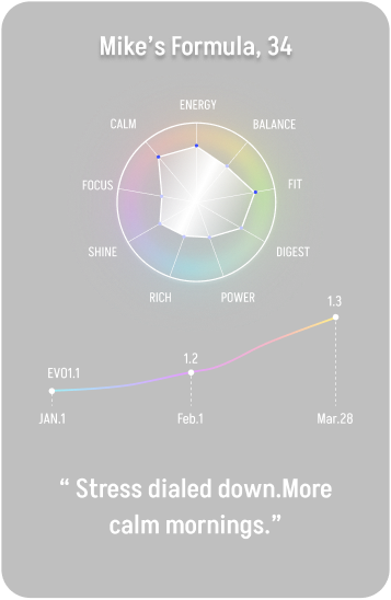 Evo1.1 checks in with you. If you feel you need something extra, your formula updates.