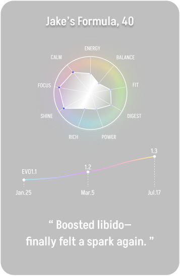 Evo1.1 evolves with every user. Our AI-powered personalization helps results show up faster and continue to improve. This is not just another supplement. It’s your personal program, built to adjust and support you over time.
